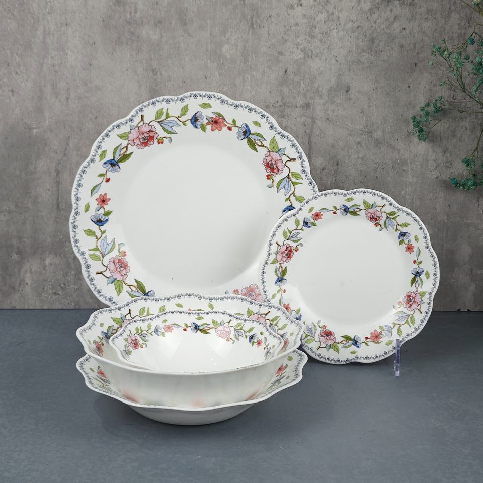 Set di Stoviglie in Vetro Opale da 24 Pezzi con Motivo Girasole, Vendita all'Ingrosso Diretta dalla Fabbrica