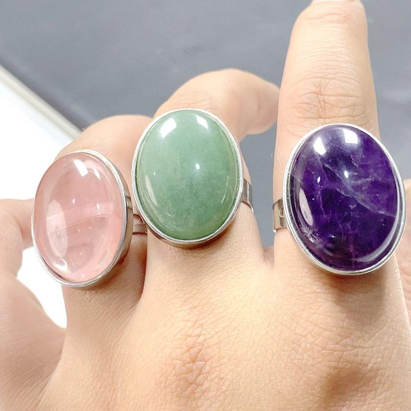 Anello Regolabile con Pietra Naturale 18*25mm a Prezzo di Fabbrica, Anelli in Ossidiana Nera, Ametista e Opale per Donne e Uomini
