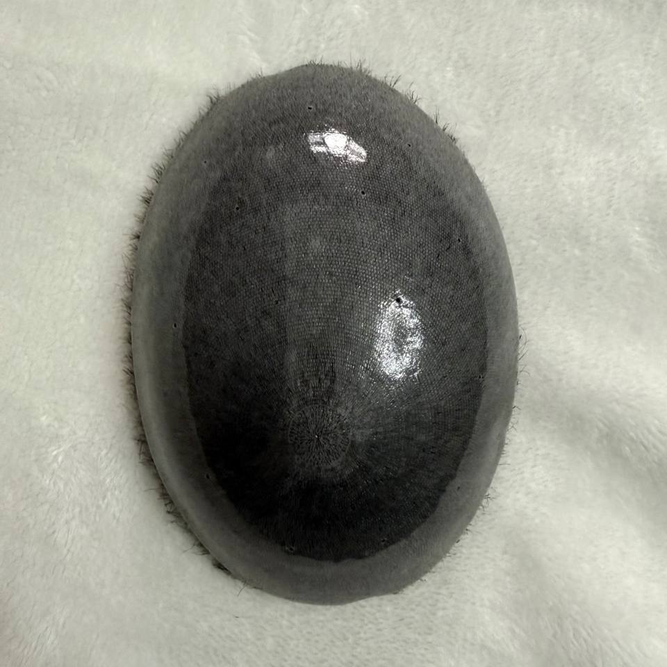 Parrucchino da Uomo Economico Prezzo di Fabbrica All'ingrosso 16x21 cm 6x8 pollici 1B Durevole Capelli Corti da 1 Pollice Base Sottile in PU Capelli Umani per Uomini