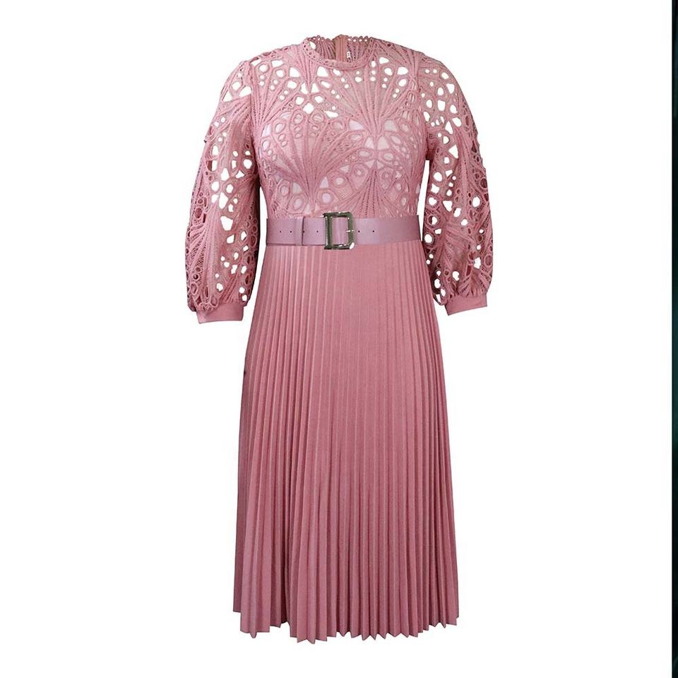 Wholesale Fall American Women's Clothing Crochet Lace Dress Pleated Dress Plus Size Long Sleeve White Church Evening Dresses