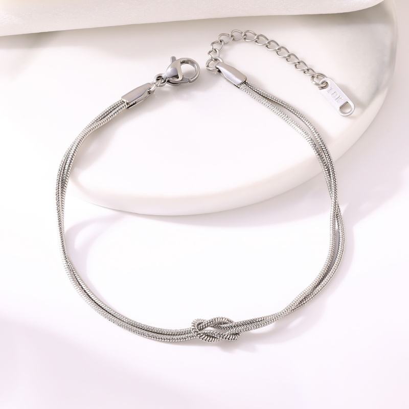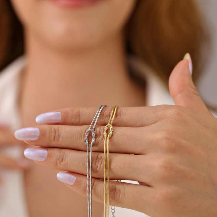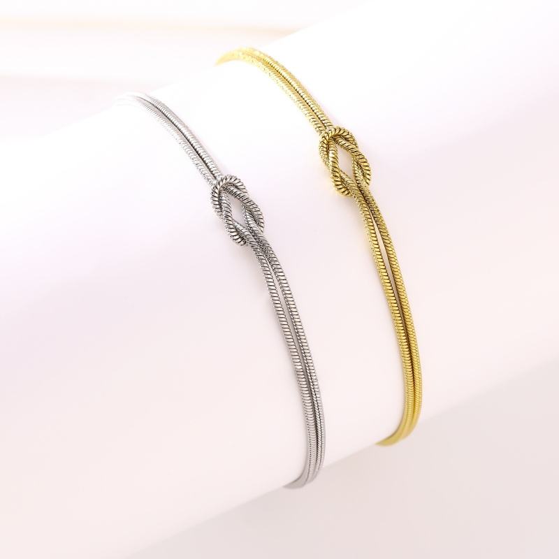 Bracciale con Nodo d'Amore per Coppie, Catena a Serpente in Acciaio Inossidabile Placcato Oro, Accessorio Semplice di Alta Qualità