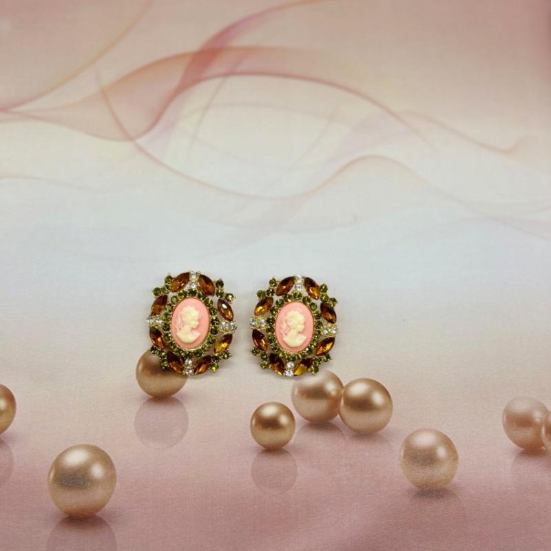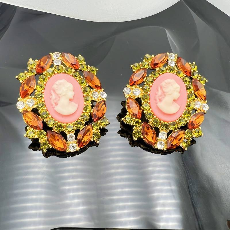 Wholesale Fashion Jewelry Vintage Medieval Palace Queen's Head Crystal Diamond Earrings Vintage Oval Cameo Resin Earrings