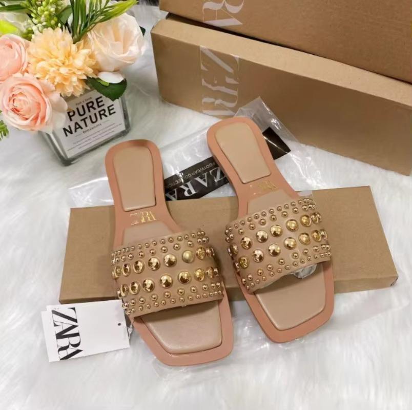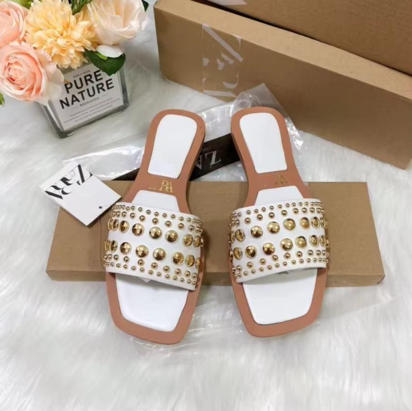 Wholesale Female Brand Summer Beach Slippers Slides for Women's And Ladies Luxury Pearl Sandals Flat Shoes High Quality