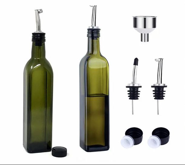 Commercio all'ingrosso vetro per uso alimentare 100ml 250ml 500ml 750ml olio da cucina antico verde ambra contenitore di vetro scuro per olio d'oliva