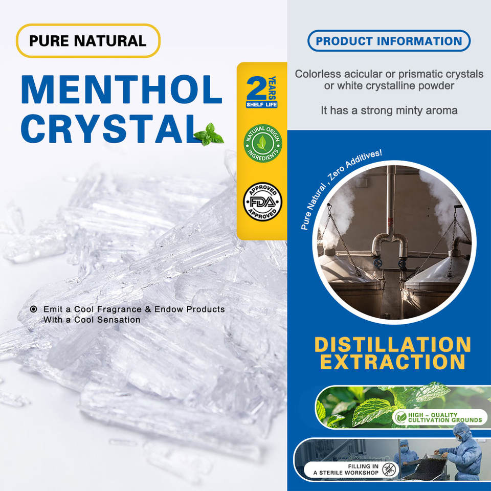 All'ingrosso per uso alimentare pezzi di ghiaccio di cristallo L-mentolo Cas 2216-51-5 cristallo di mentolo alle erbe utilizza additivi per dolciumi gelato