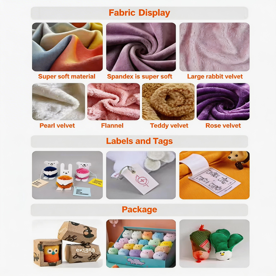 Imbottitura in cotone: Fornisce una trama comoda e abbracciabile, migliorando l'esperienza tattile dell'utente e il sollievo dallo stress.