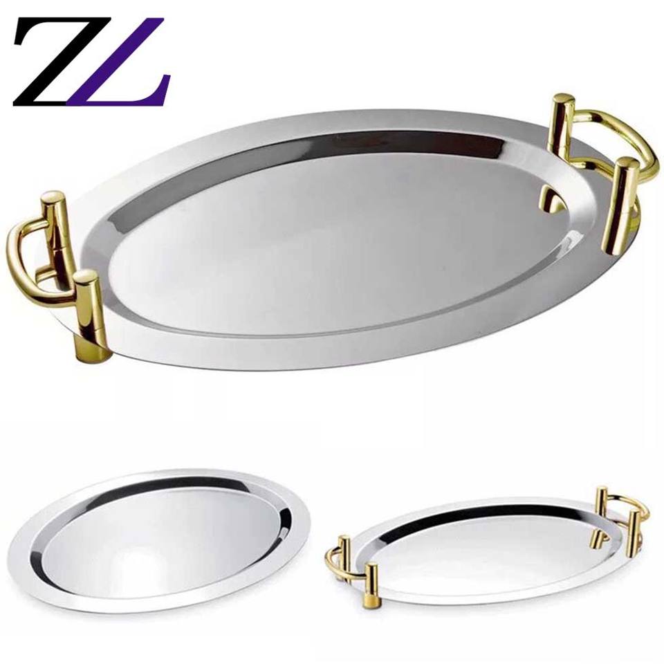 Commercio all'ingrosso piatto di frutta in acciaio inox da pranzo piatti set di stoviglie da cucina buffet plateaux miroir di verdure piatto di cioccolato