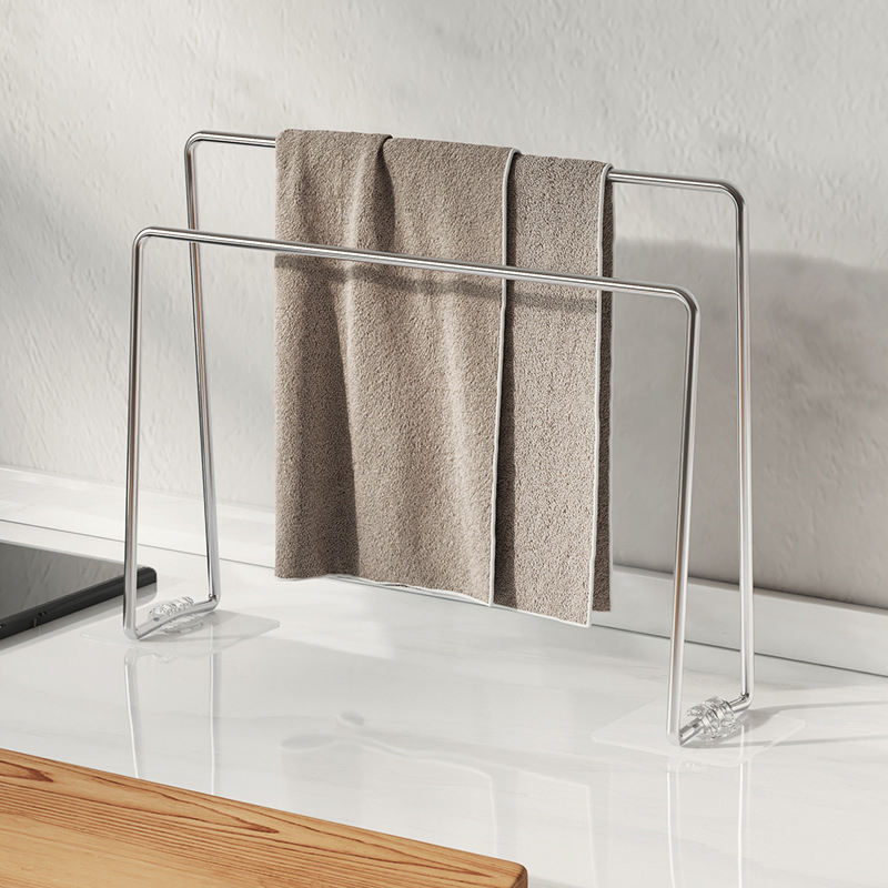 Portasciugamani da Cucina e Bagno in Acciaio Inox a Doppio Ripiano, Design Funzionale, Vendita all'Ingrosso