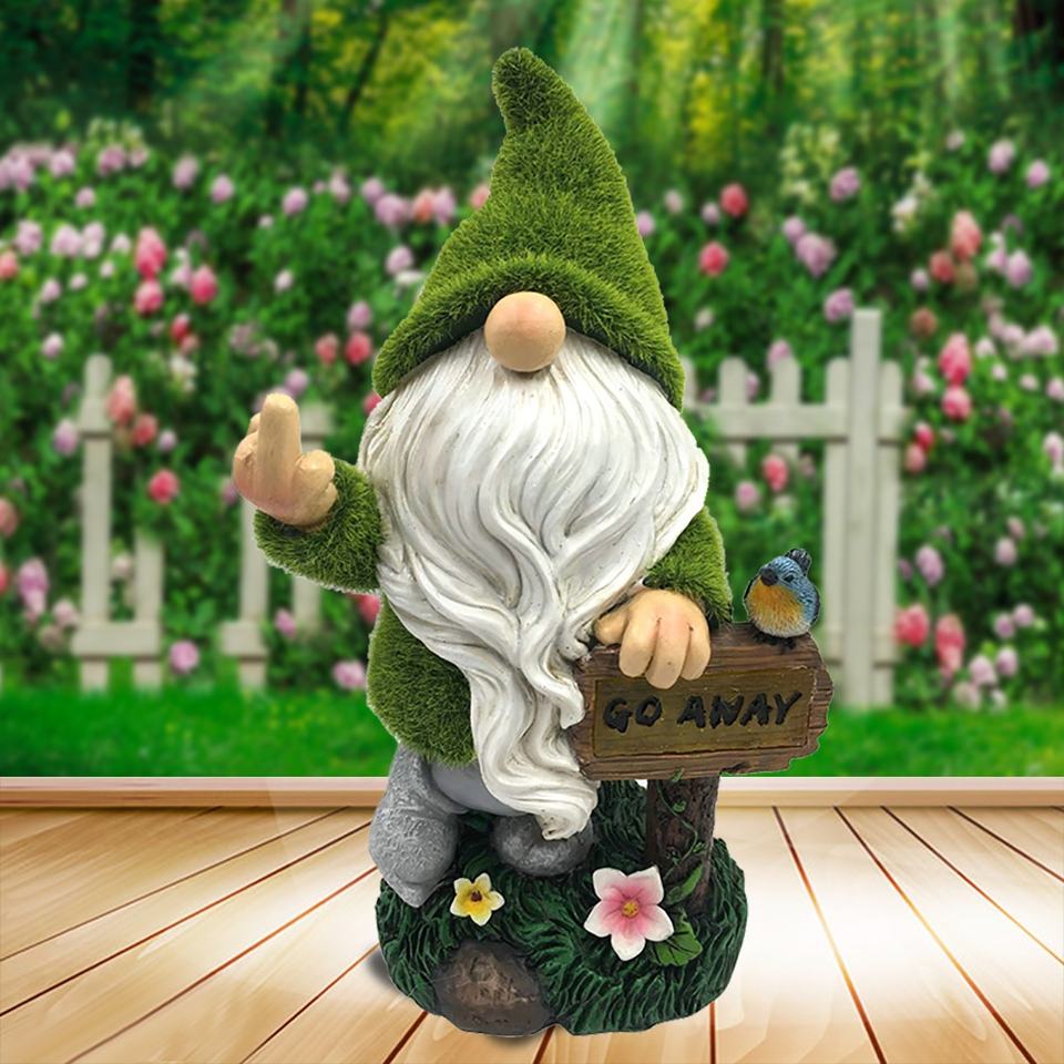 Wholesale Garden Yard Decor Flocked Polyresin Dwarf Figurine, Artificial Moss Finished Flipping the Bird Resin Gnome Statue
