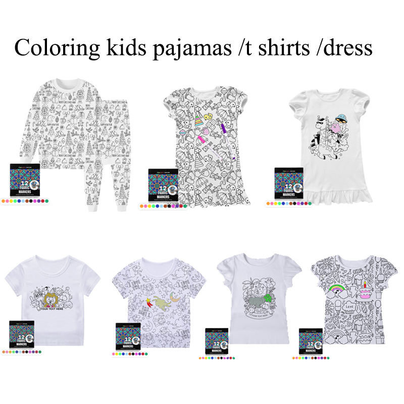 Wholesale Girl's Clothing Summer Short Sleeve Pajamas Set Knitted Coloring Pajamas for Girls and Boys