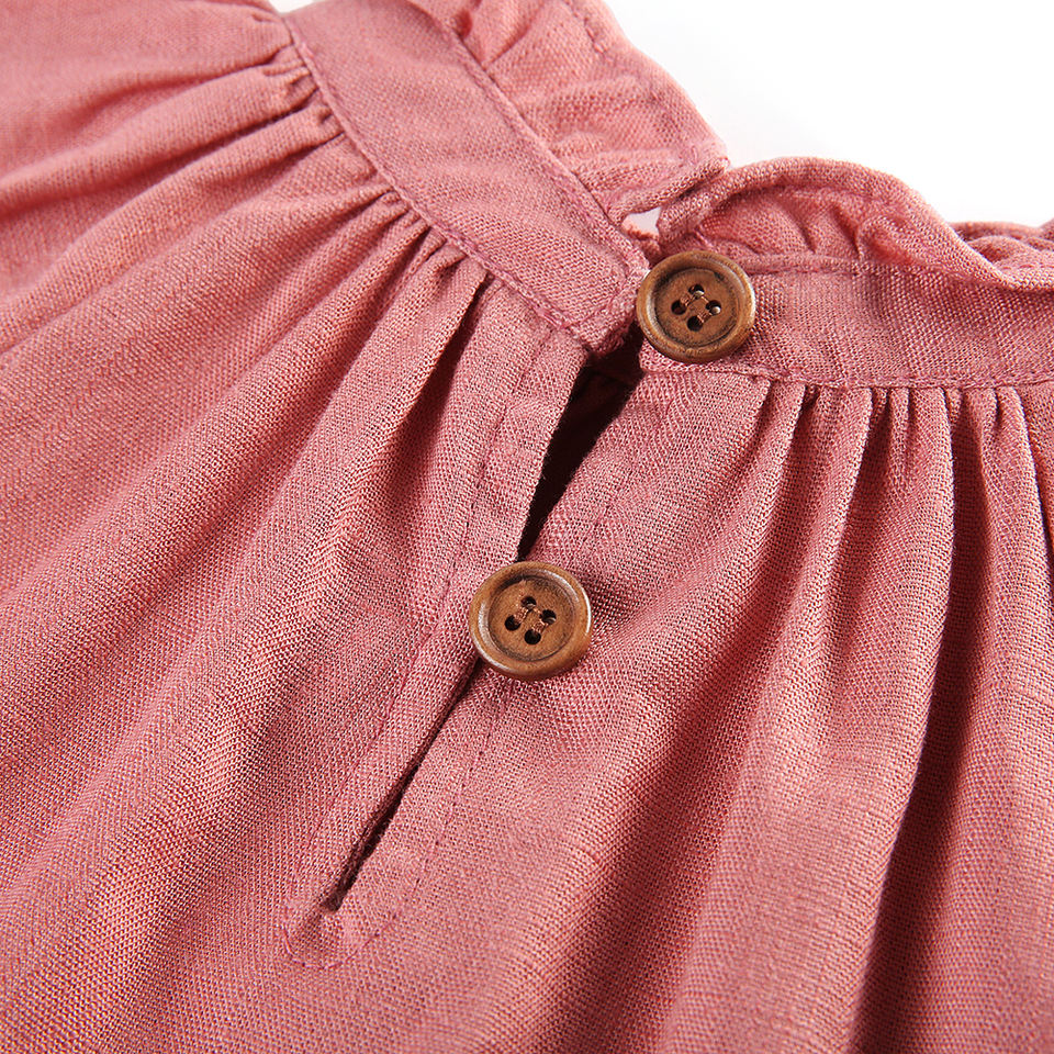 Wholesale Girls Dresses Kids Long Sleeve 100% Cotton Muslin Linen Mauve Ruffle Little Girls Cute Dress