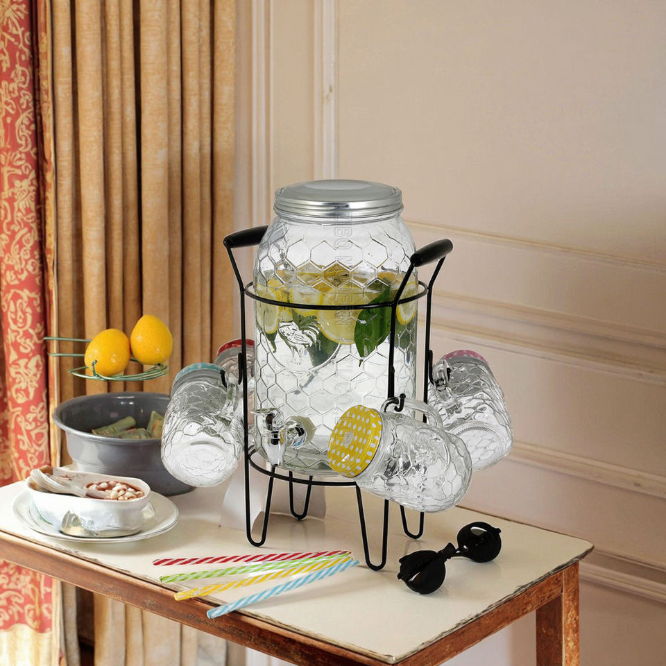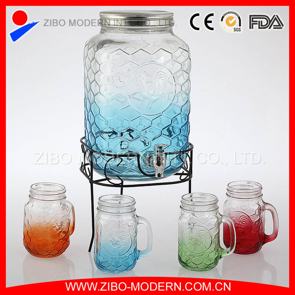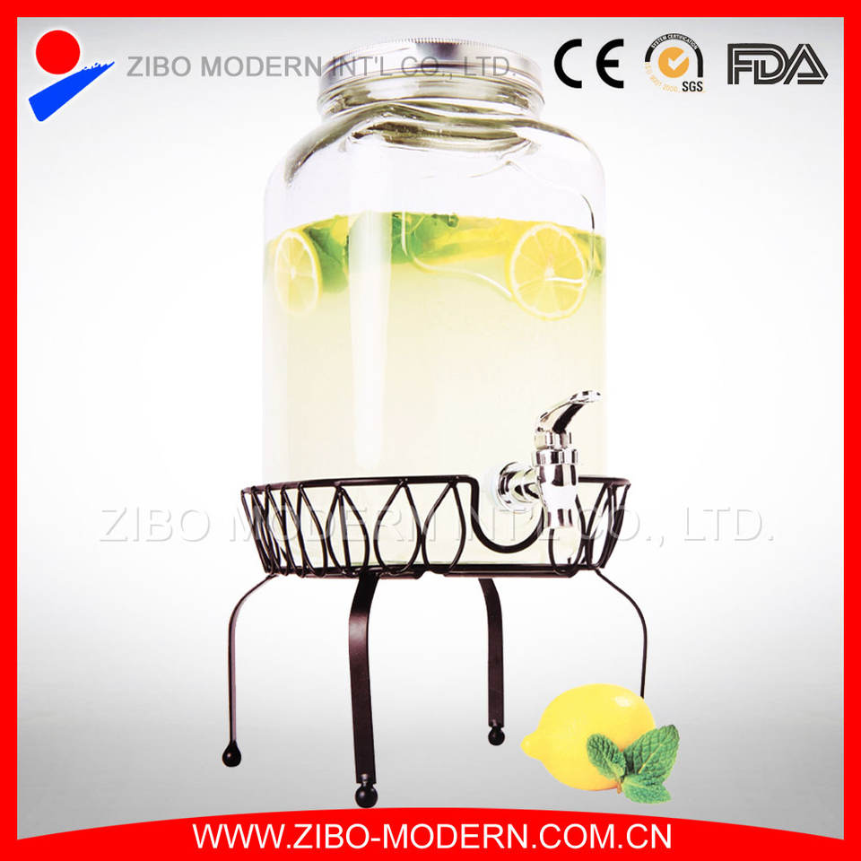 Wholesale Glass Beverage Dispenser with Tap and Stand for Serving Drinking Water Printed Technics