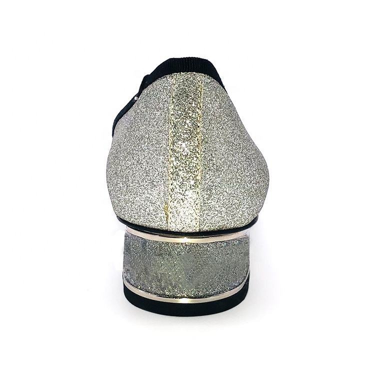 Wholesale Glitter Round Toe Low Heels Shoes Custom Logo Genuine Leather Silver Ladies Square Heels