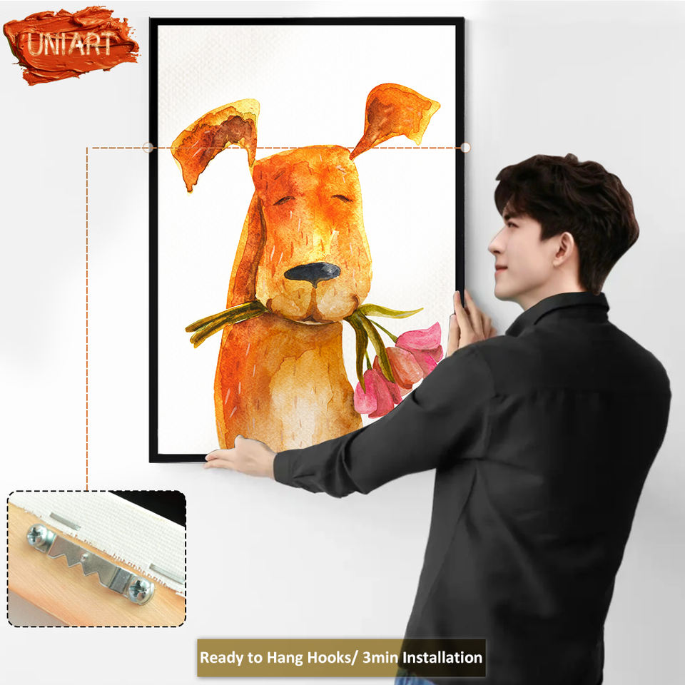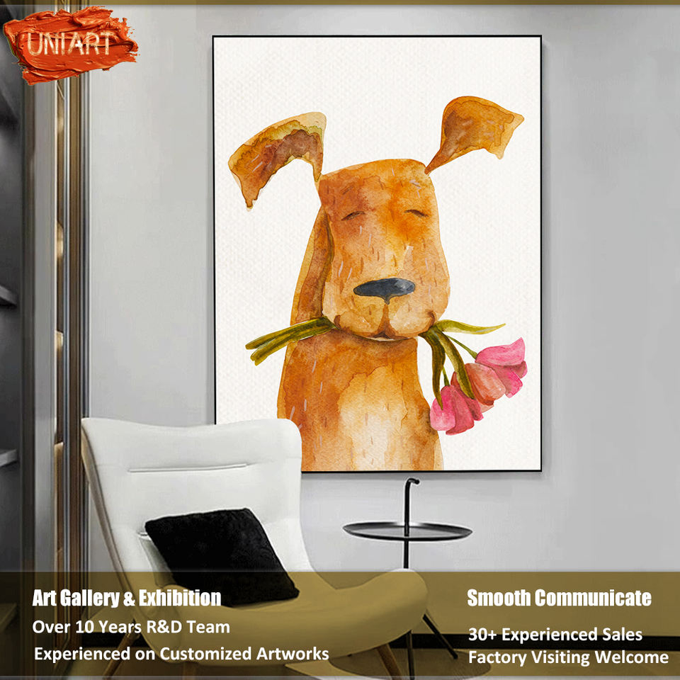 Wholesale Glossy Doggy Flower Canvas Print Wall Art Vertical Porcelain Nursery Animal Wall Painting Decor Children Room Poster