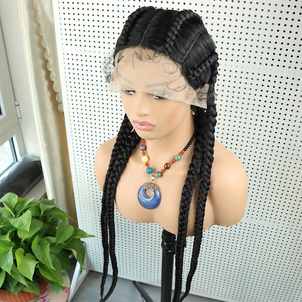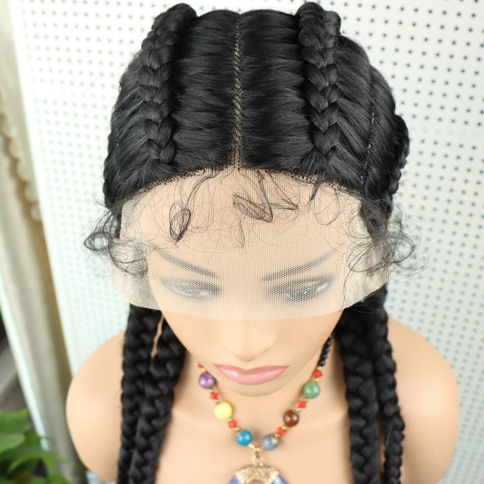 Wholesale Glueless African Synthetic Box Braids Braided Lace Front Wigs for Women Frontal Baby Hair Cornrow Braid Lace Wig