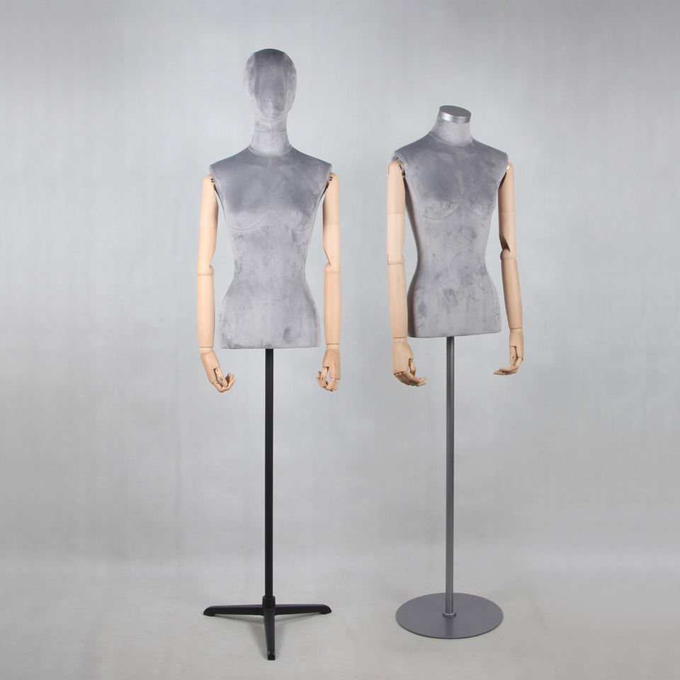 Wholesale Grey Velvet Female Mannequins Maniquine Displaying Women Clothes Torso Manquin Maniquies