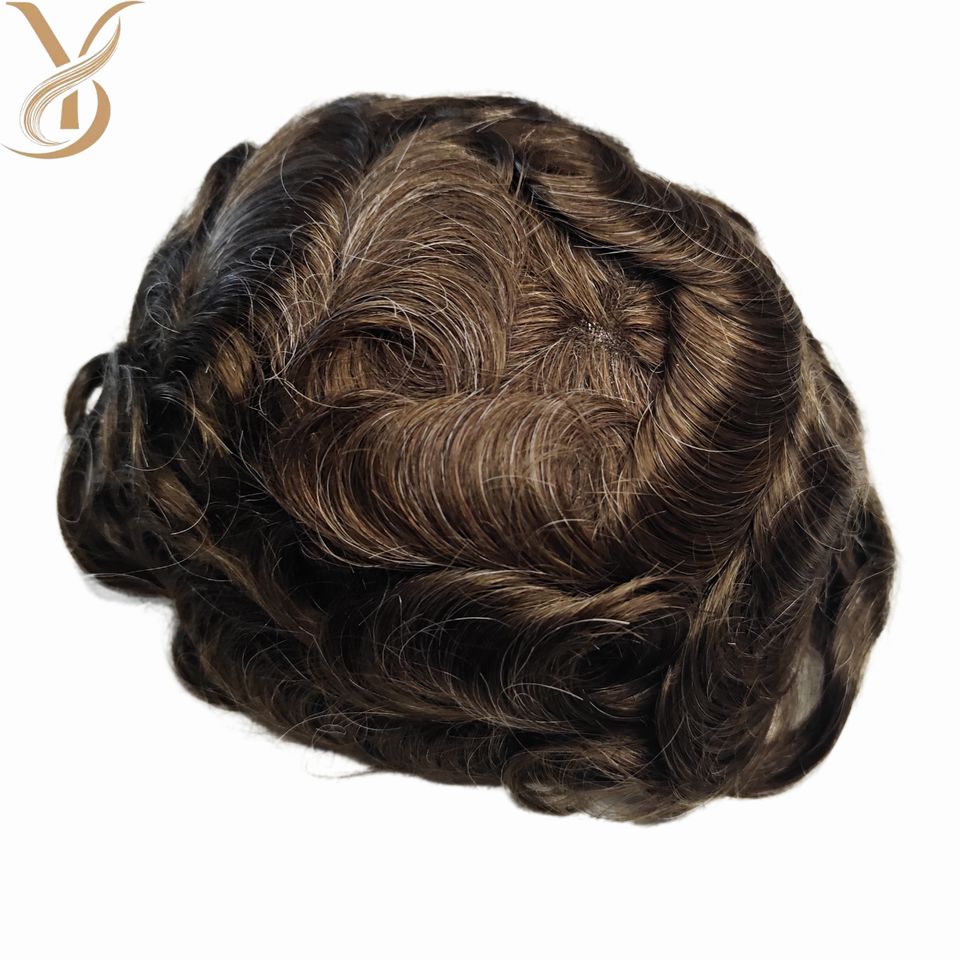 Wholesale HD Size 8x10 Inch Indian Remy Human Hair Natural Men Toupee Wig Hair Replacement Dark Brown