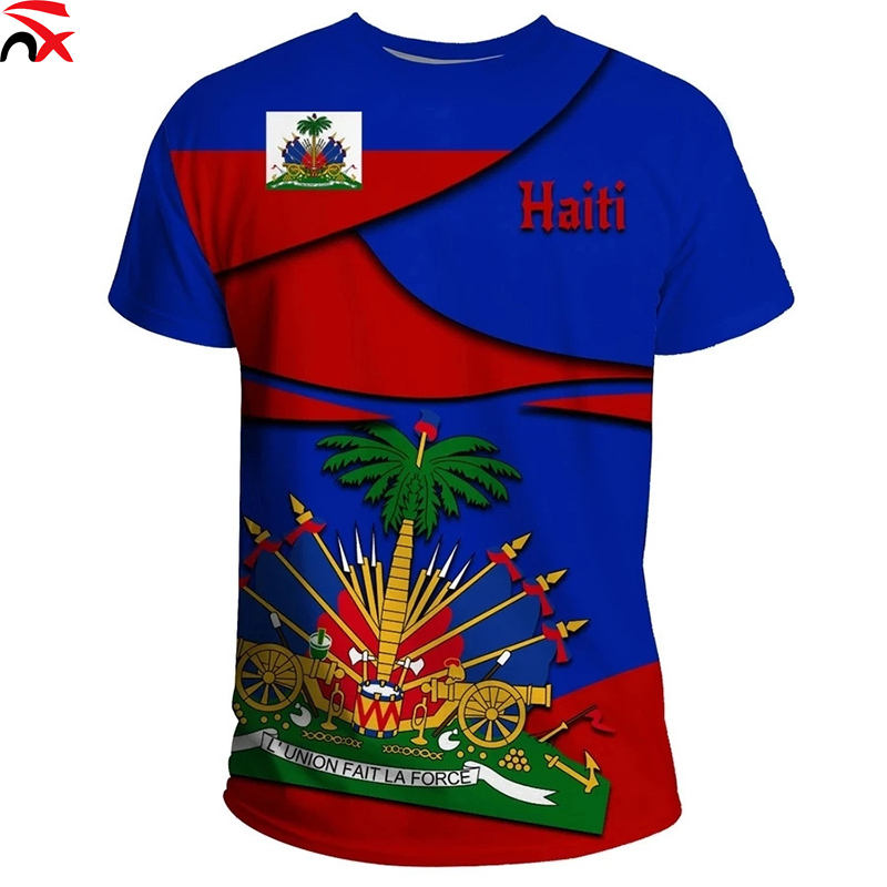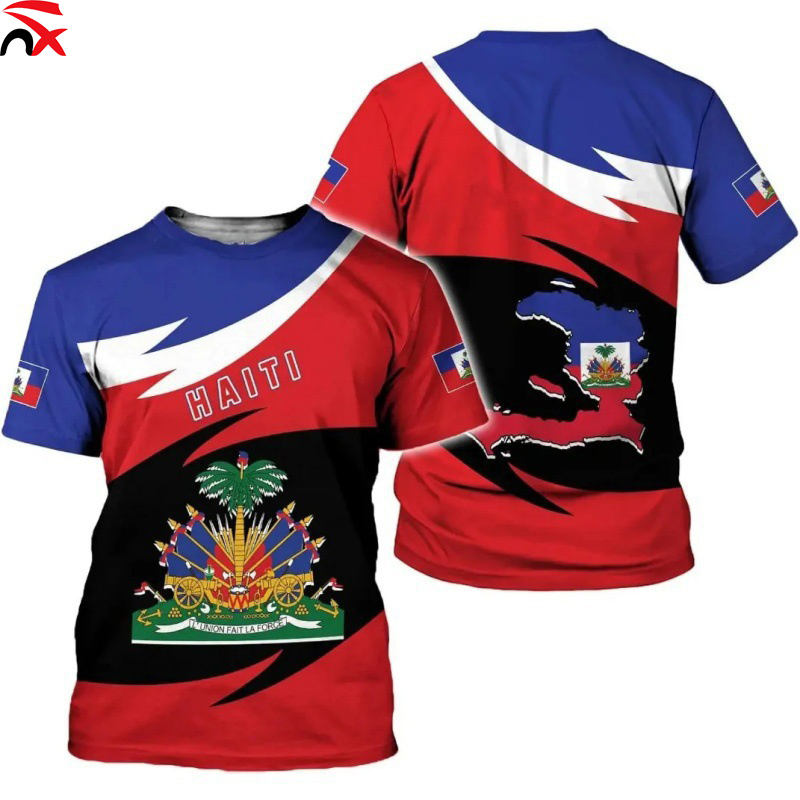 Wholesale Haitian T-shirt 3D Printed with National Flag Pattern Haiti Product Customized Logo Promotional T-shirts