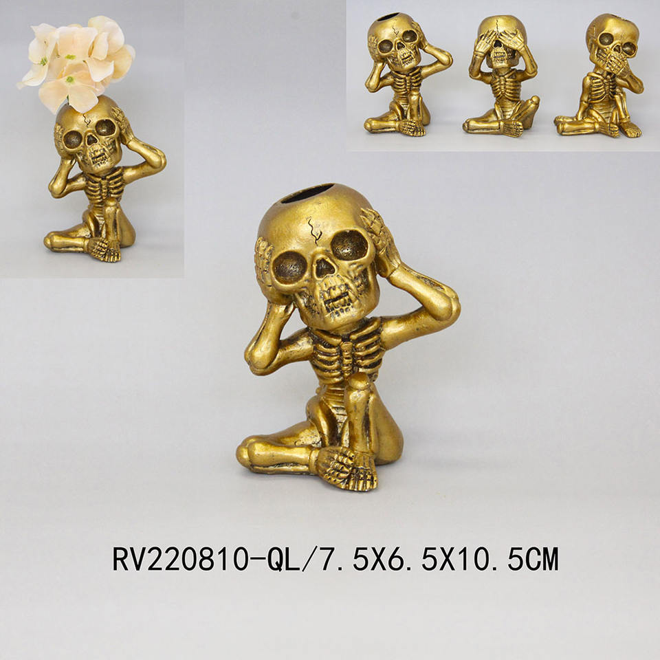 Ingrosso decorazione di Halloween statua regali decorazioni per la casa non vedere il male non sentire il male parlare No male teschio scheletro Charm decoro teschio