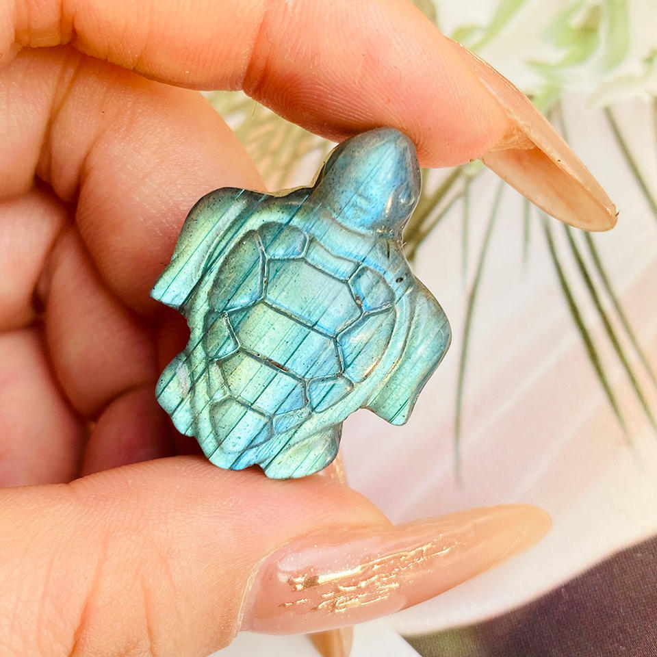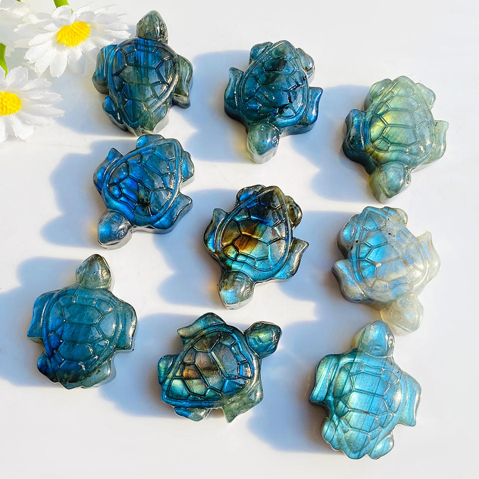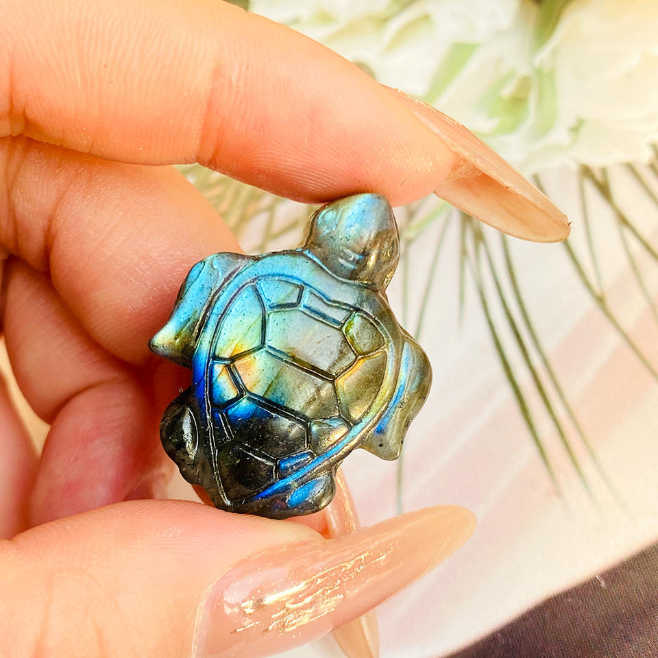 Wholesale Hand Carved Crystal Carving Blue Flash Labradorite Small Turtle for Home Decoration Engraving Stone-Themed Gift