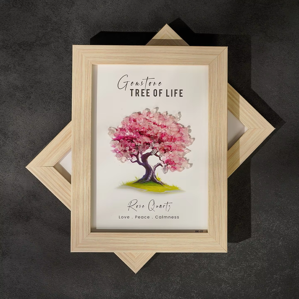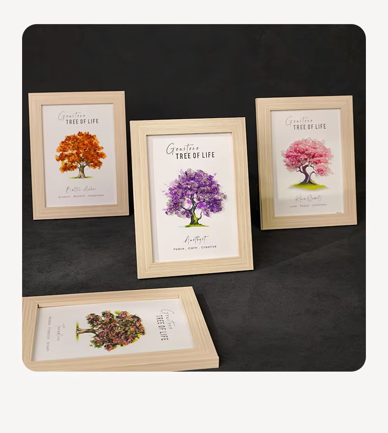 Cornice Portafoto Albero della Vita in Pietra Preziosa Fatta a Mano all'Ingrosso | Pietre Curative in Cristallo Vero (Ametista e Quarzo Rosa) | Arte Murale Spirituale 3D