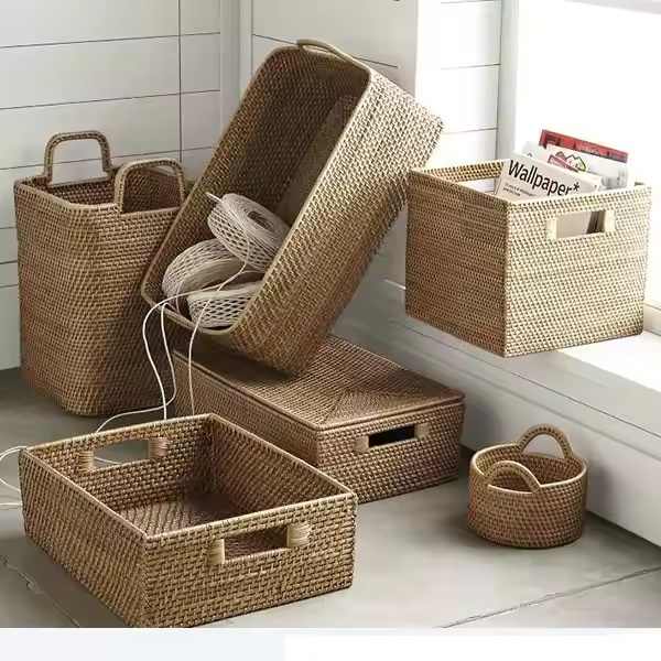 All'ingrosso fatto a mano grande quadrato in vimini in vimini tessuto di bambù per lo stoccaggio della biancheria organizzazione della casa