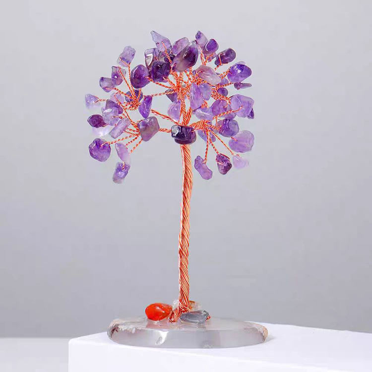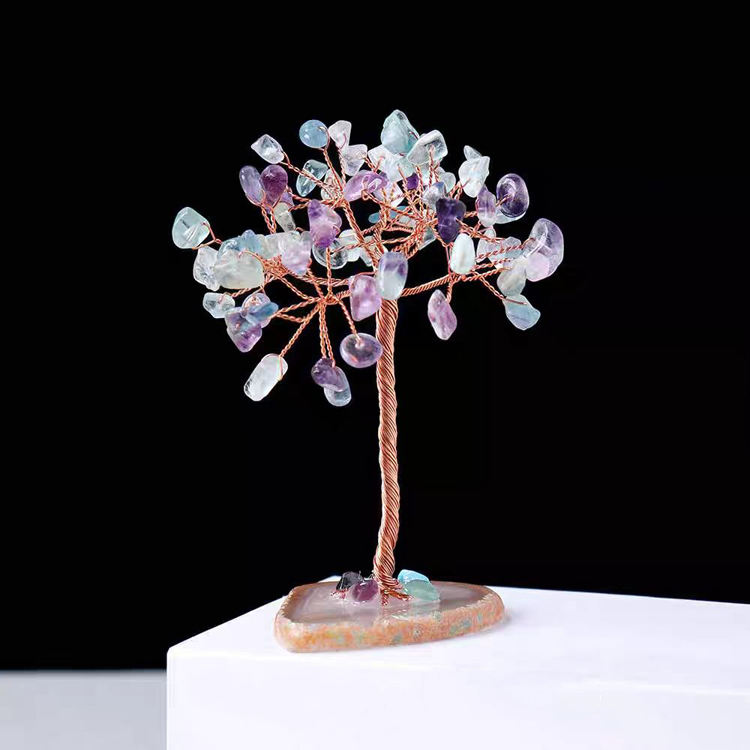 Commercio all'ingrosso fatto a mano sette Chakra agata albero di cristallo denaro albero ornamenti in resina Base albero della fortuna Laser pietra naturale souvenir