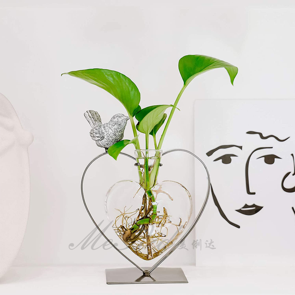 Commercio all'ingrosso a forma di cuore vaso di vetro impianto terrario vaso di vetro con supporto per la decorazione domestica eco-friendly