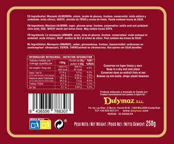 Mandorla, zucchero, glucosio, uovo, amido di frumento, limoneIngredienti