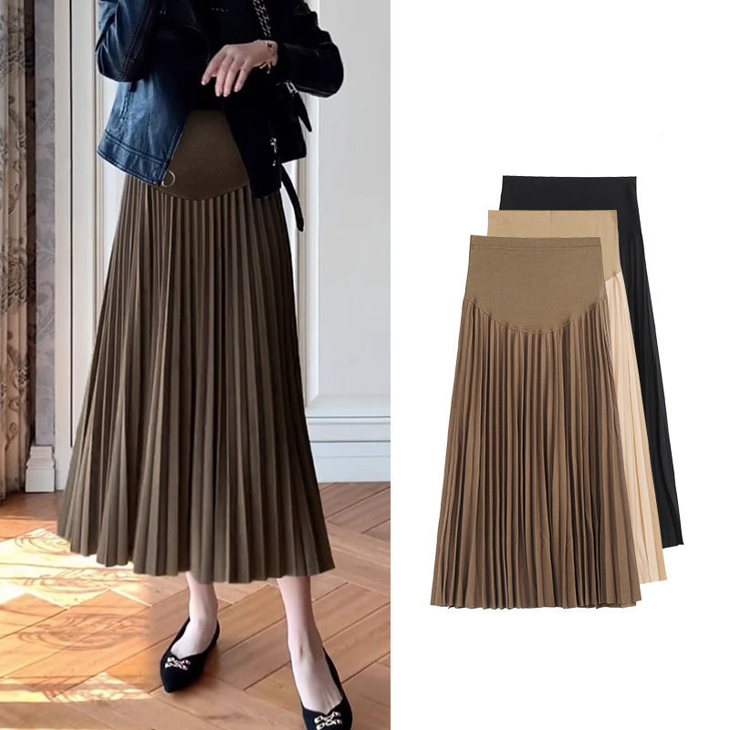 Wholesale High Quality Breathable A-Line Long Pregnant Skirt for Maternity Women Slim Loose High-Waist Pleated Skirts Winter