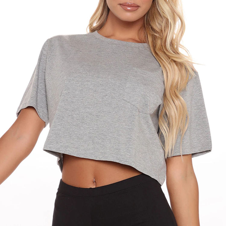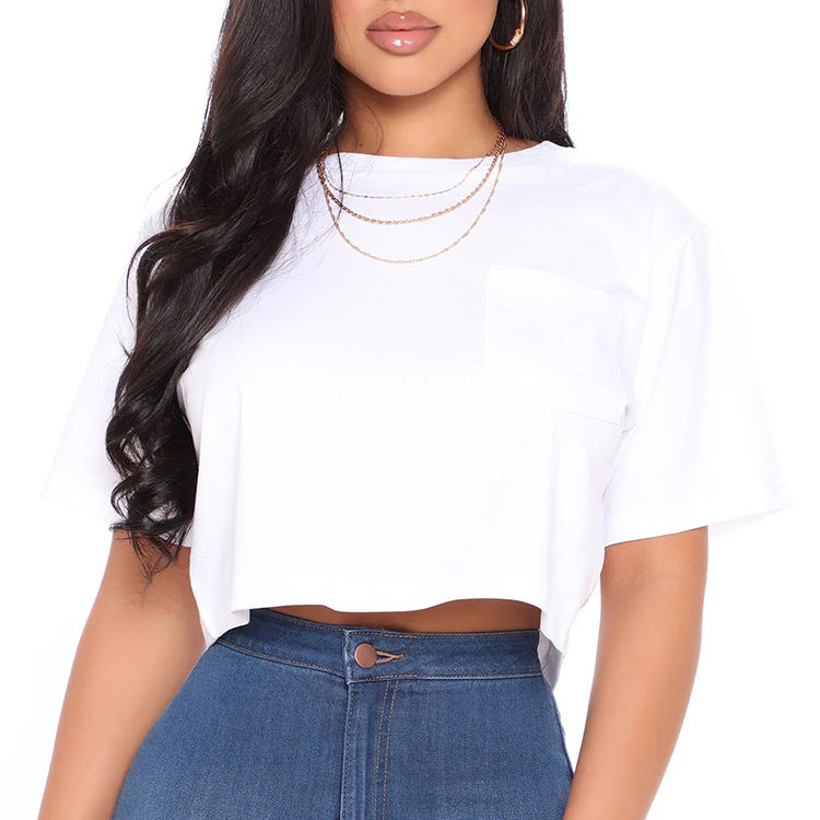 Commercio all'ingrosso di alta qualità prezzo a buon mercato cotone t-shirt o-collo di base t-shirt in bianco Crop Top Boxy personalizzazione t-shirt per le donne