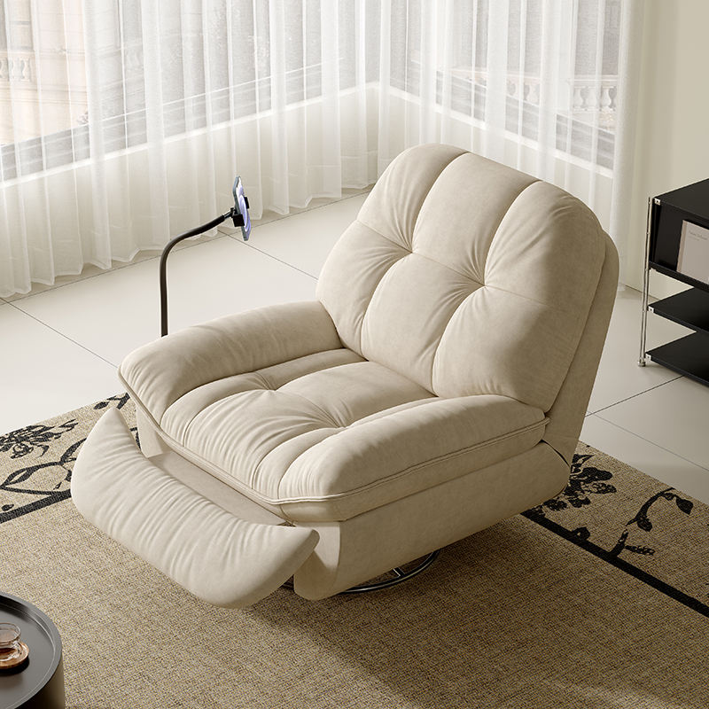 Qiantong Poltrona elettrica girevole multifunzione 1 posto per soggiorno, massaggio e telecomando, struttura in metallo, rivestimento in tessuto