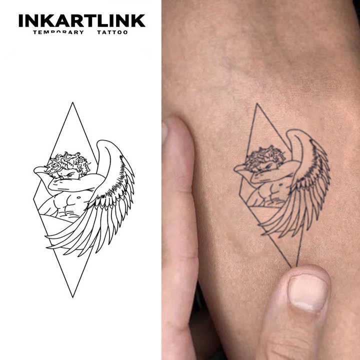Adesivi per Tatuaggi Semi-Permanenti Impermeabili con Motivi Geometrici e di Angeli Caduti, Alta Qualità, Fornitura all'Ingrosso