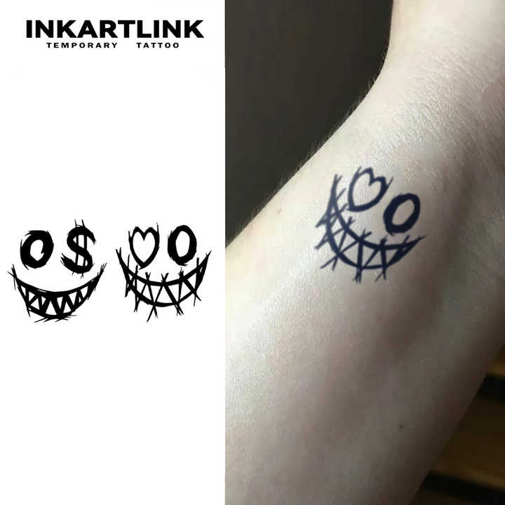 Wholesale High Quality Custom Graffiti Smile Face Money Heart Eye Waterproof Natural Fruit Juice Semi Permanent Tattoo Sticker