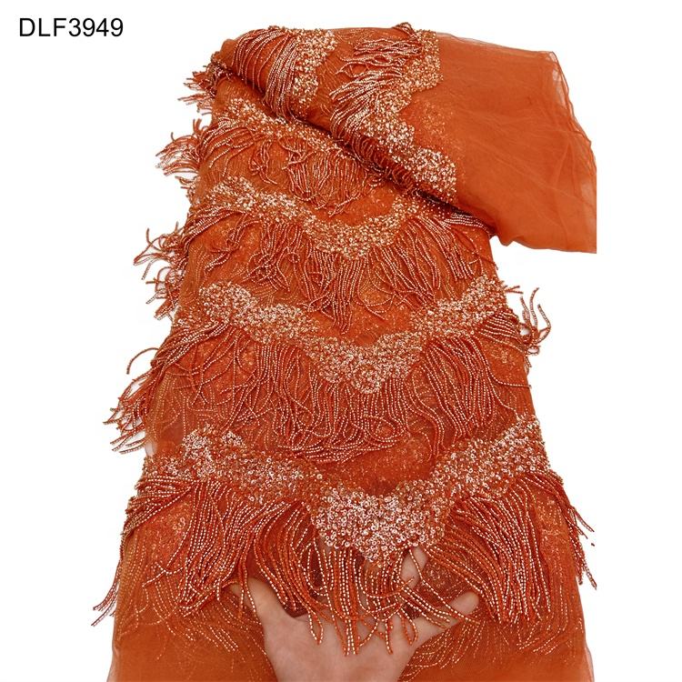Wholesale High Quality Elegant Beaded Tube Lace Fabric for Wedding Party Dress Heavy Shiny Tassel Tube Bead Sequins Lace Fabric