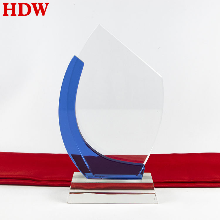 Wholesale High Quality K9 Blank Crystal Glass Trophy Custom Individual Name Engraved Blue Crystal Trophy Award for Souvenir Gift