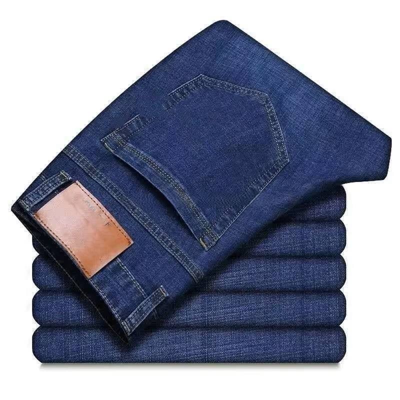 Wholesale High Quality Men's Business Jeans Straight Pencil Pants High Street Light Wash Knitted Denim Trousers