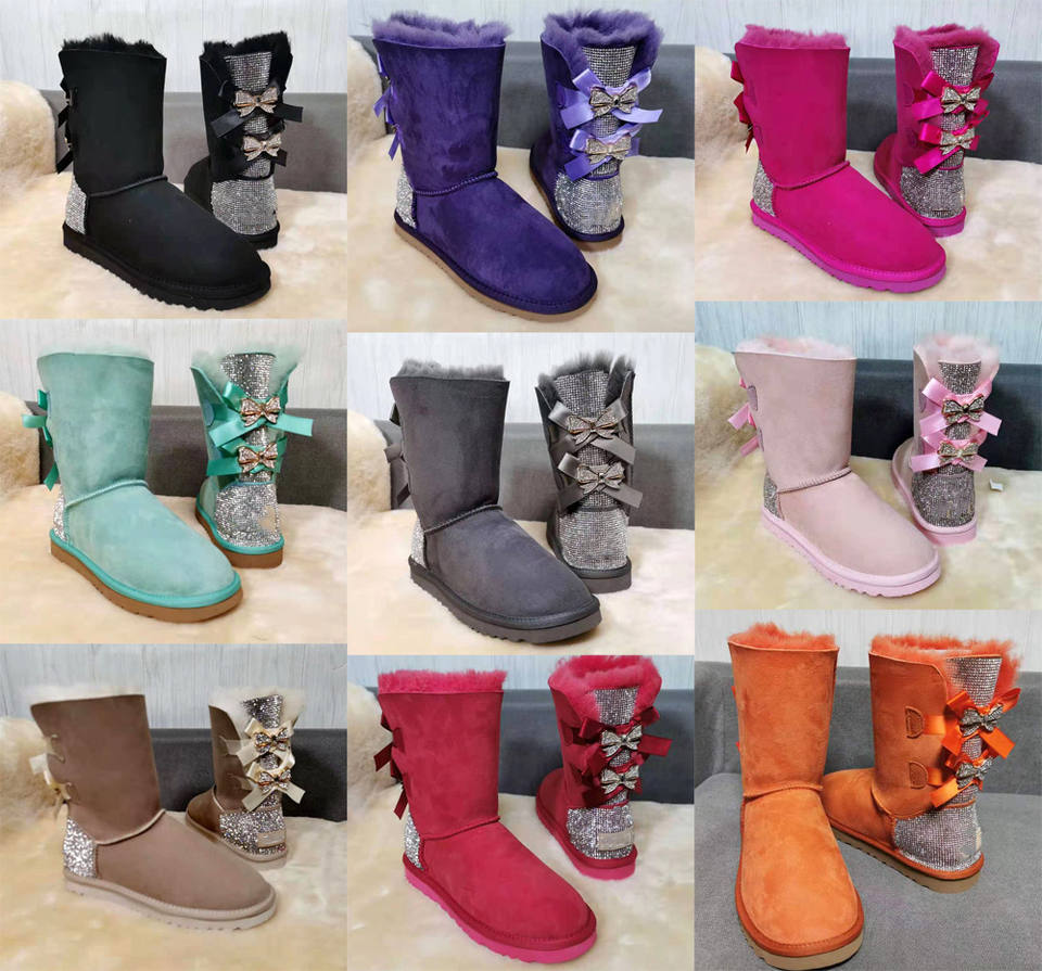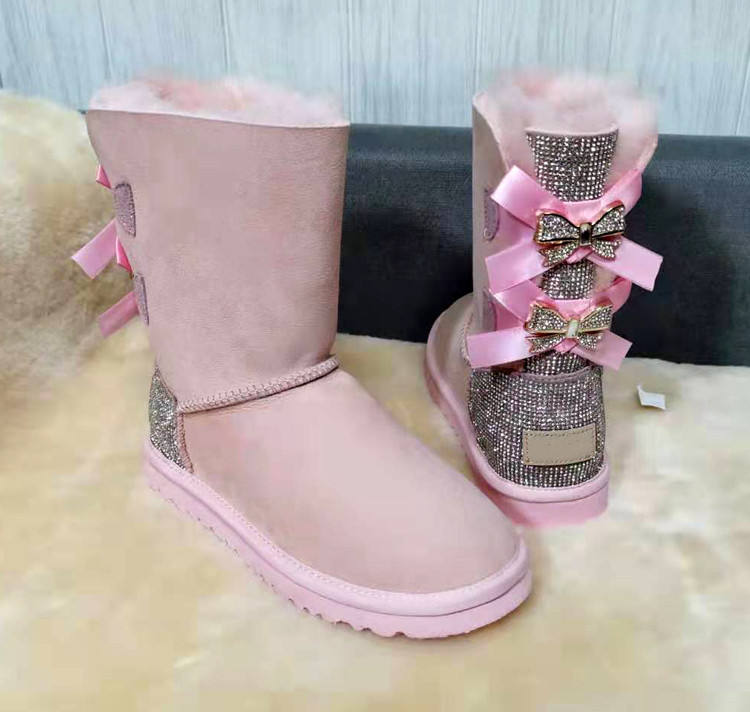 Wholesale High Quality Women's Winter Fur Snow Boots with Thermal Feature Fashion Bows and Rhinestones Bling Bling Design