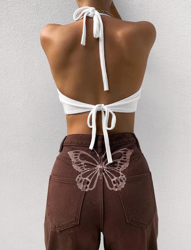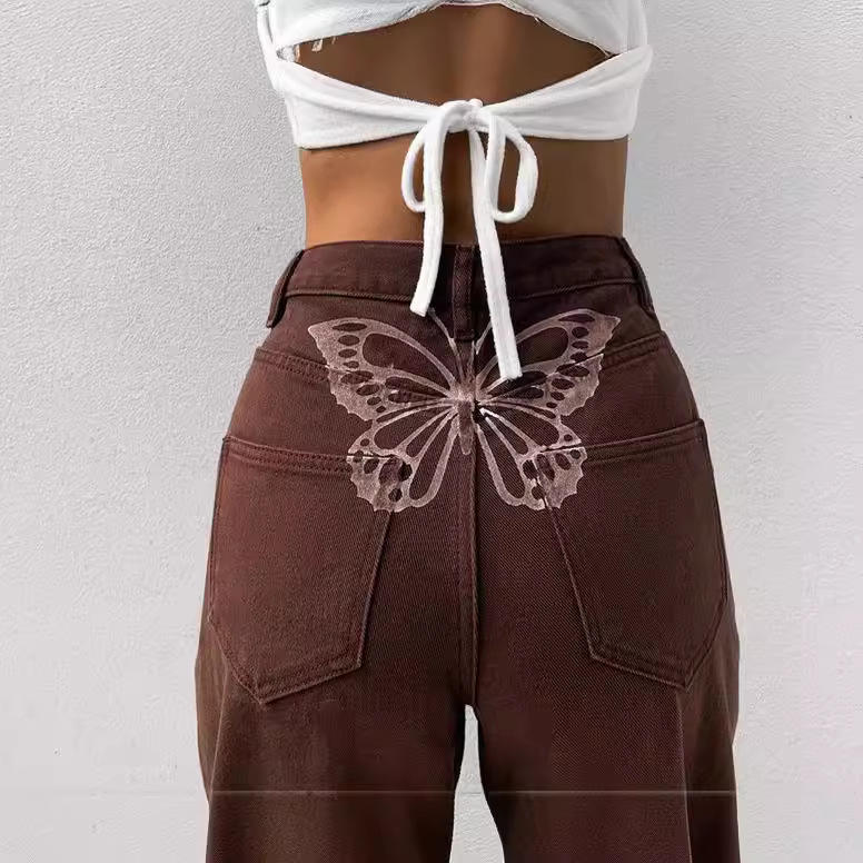Wholesale High Waisted Loose and Comfortable Wide Leg Casual butterfly Print Fashionable Jeans for Women