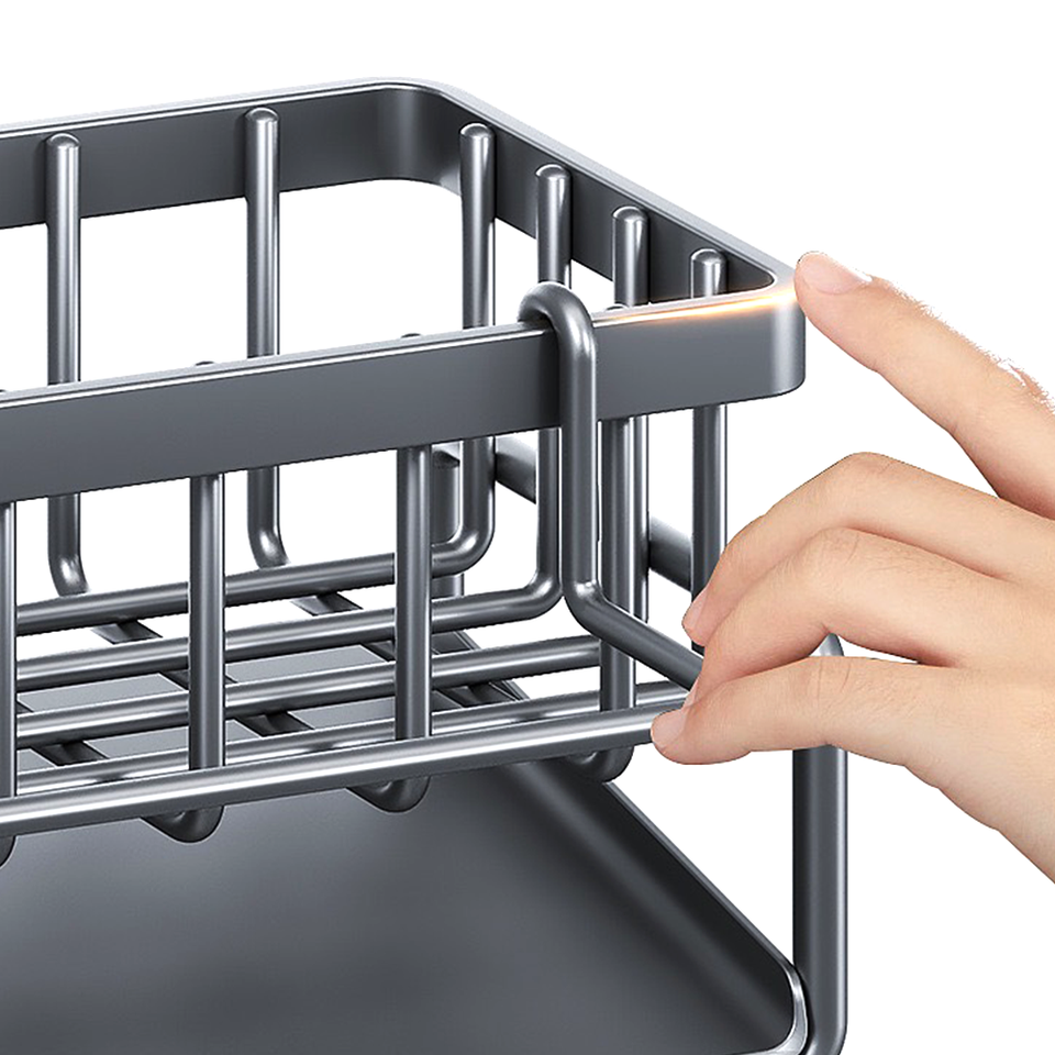 Wholesale Hollow Design Dish Soap Towel Organizer Storage Rack Organizer Kitchen Sink Sponge Holder With Draining Tray