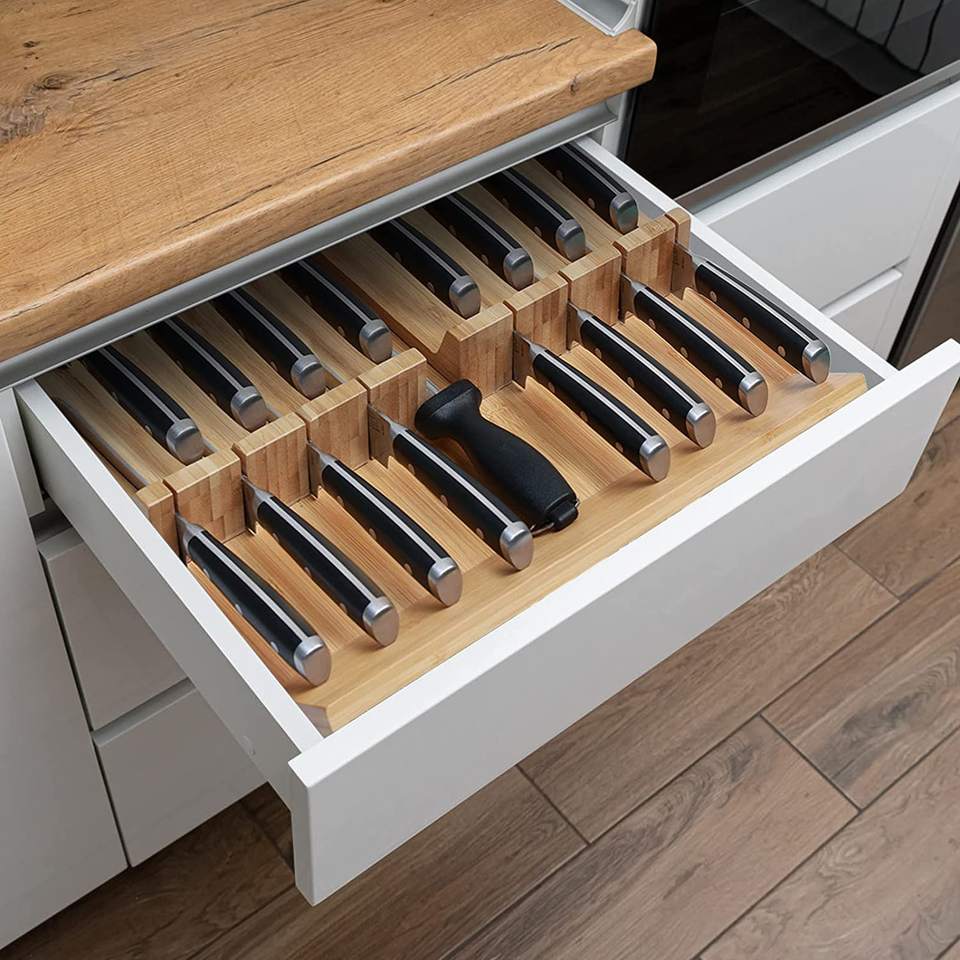 Wholesale Home Chef Knife Drawer Organizer Stand In-Drawer Bamboo Kitchen Knife Block Knife Holder