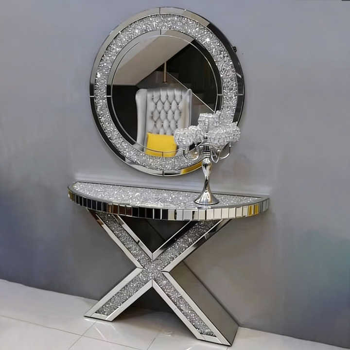 Mobile Consolle da Ingresso di Arredo Casa all'Ingrosso con Specchio Tavoli Consolle Moderni con Diamanti di Cristallo Infranto
