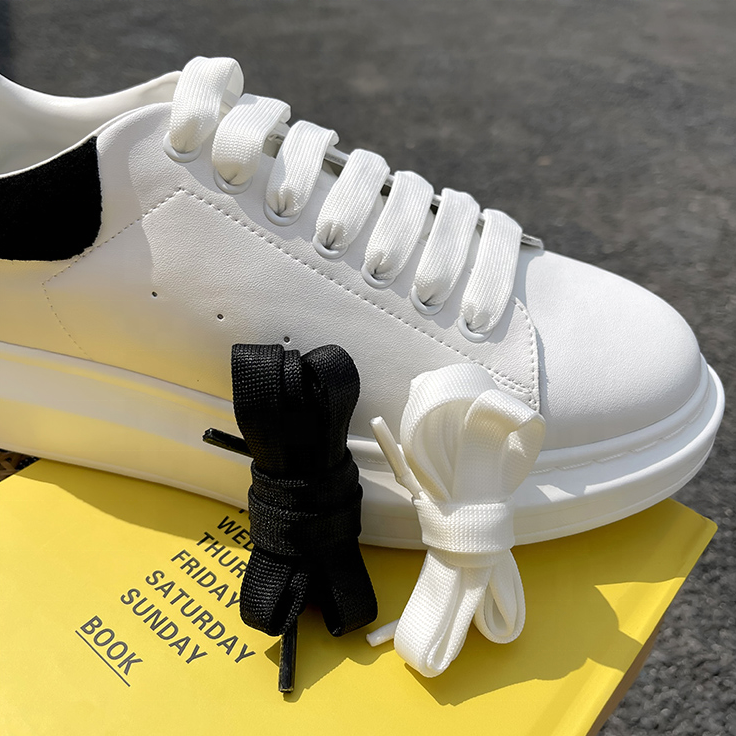 Wholesale Hot Sale MCQUEENES Same Style 1.2cm Wide Shoelaces Black and White Canvas Shoe Laces