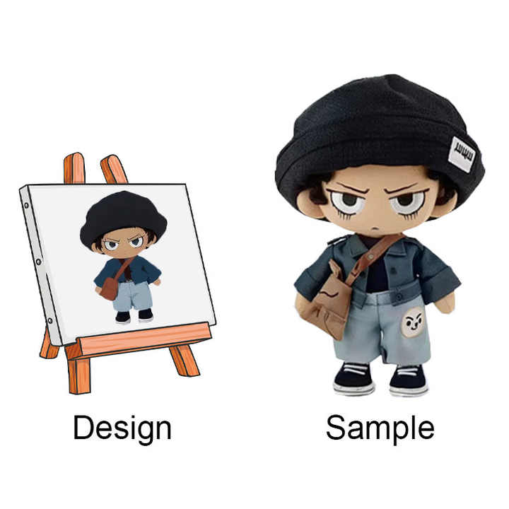 Wholesale Human-shaped Doll Wearing a Hat Custom Plush Toys From Drawing Kids Soft Toys for Kids