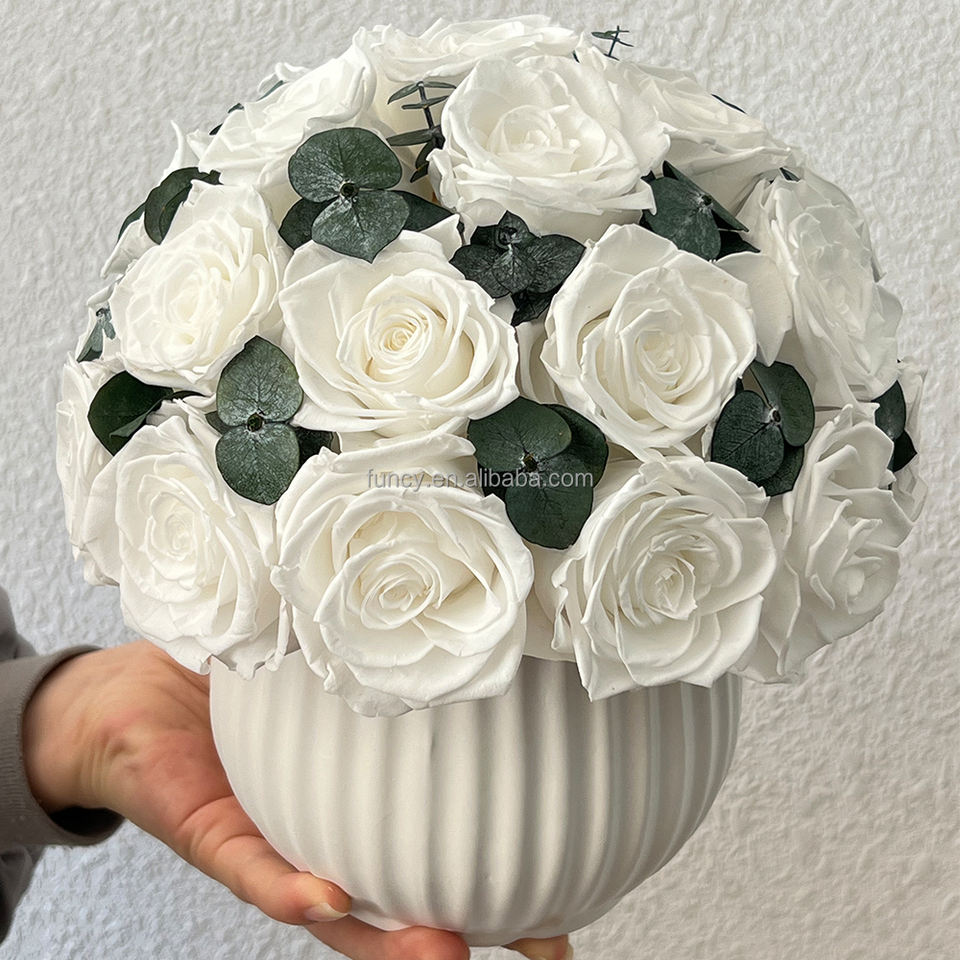 Ingrosso immortale bianco conservato rose porcellane vaso ceramica decorazione per nozze cupola naturale eterna laurea festa della mamma