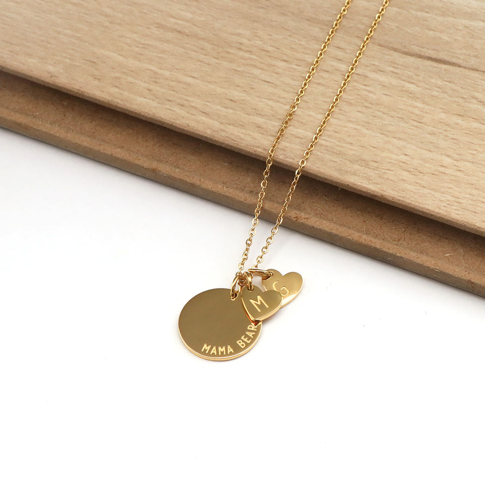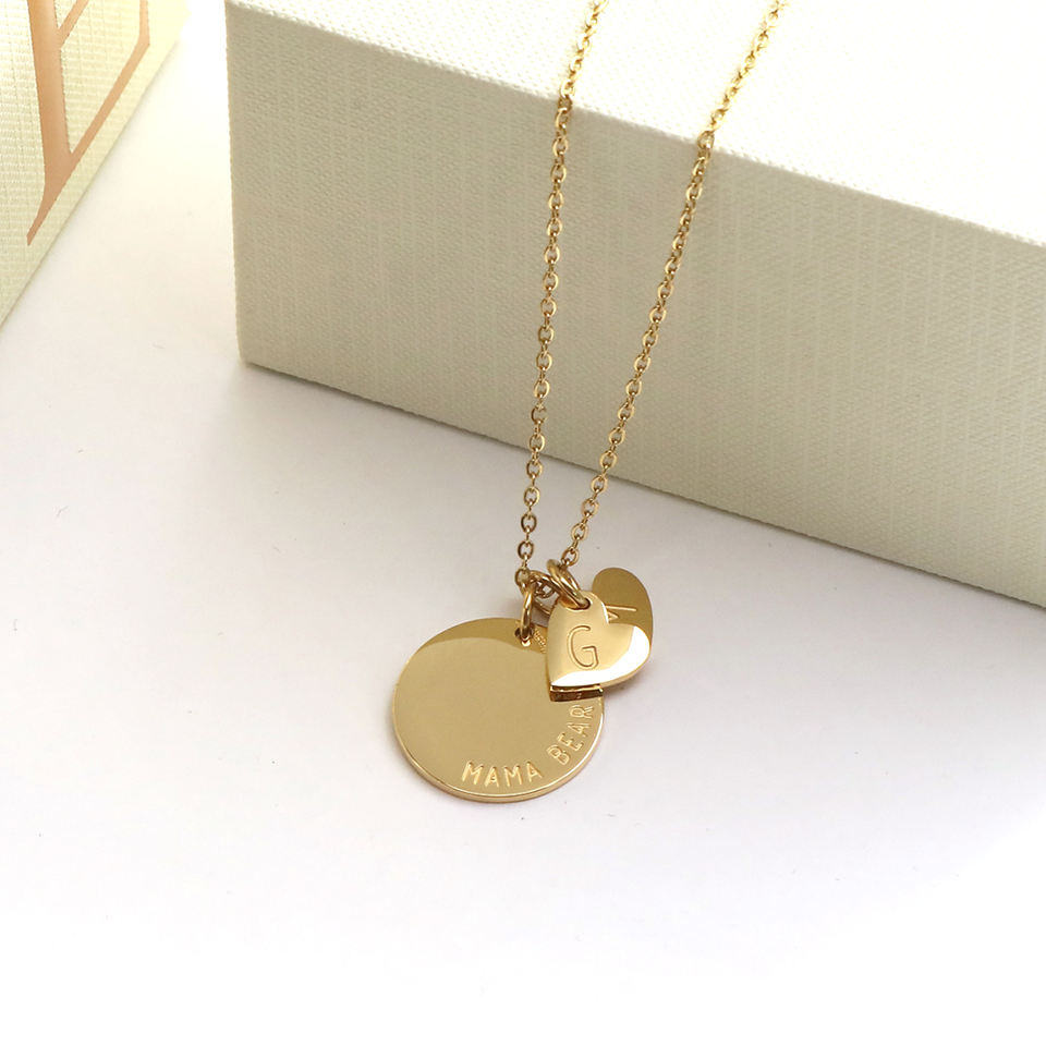 Wholesale Jewelry Personalized Disc Engraved Custom Words Gold Tiny Initial Charm Necklace for Women Mom Birthday Gift