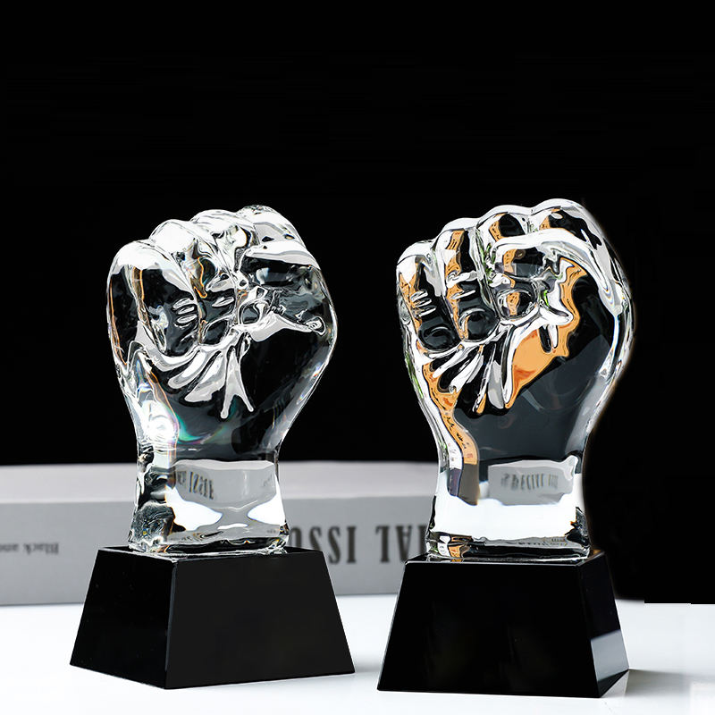 Wholesale K9 Customizable Crystal Glass Awards 3D Logo Fist Trophy As Centerpiece Other Crystal Crafts