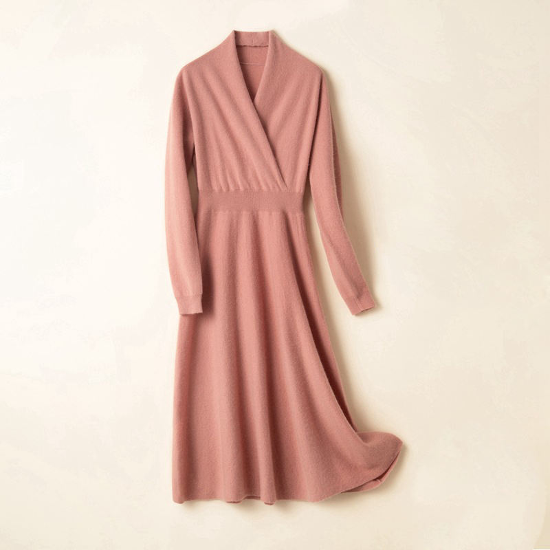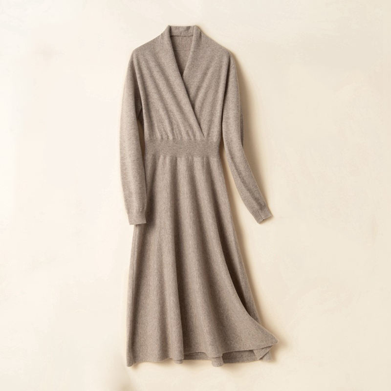 Wholesale Knitted Dress Autumn Slim Elegant Long Sleeves Custom Winter Pullover Women Long Cashmere Sweater Dress