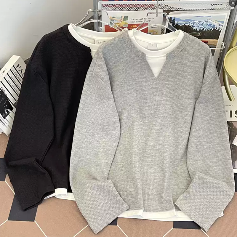 Maglietta Termica a Maniche Lunghe da Uomo in Cotone 100% 250 Gsm con Colletto a Due Strati Grigio Lavorato a Maglia