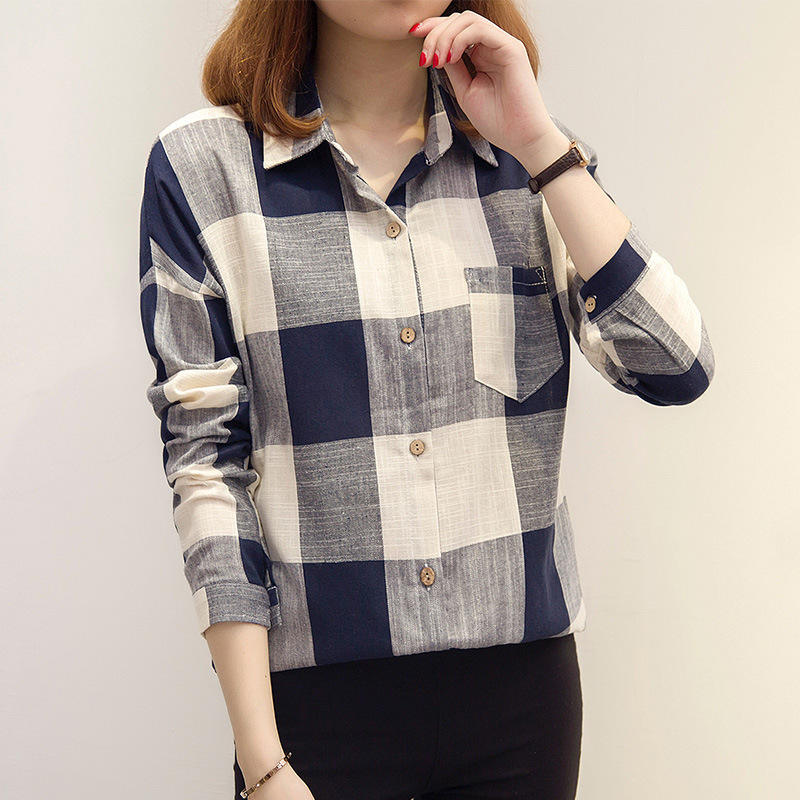 Product name:Turn Down Collar Long Sleeve Plaid Shirt Blouse For Women